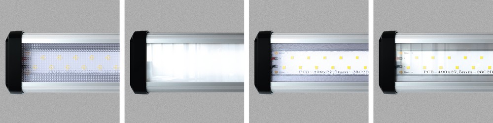 Т.к. светодиодная планка расположена максимально близко к рассеивателю, потери светового потока в этой системе минимальны.