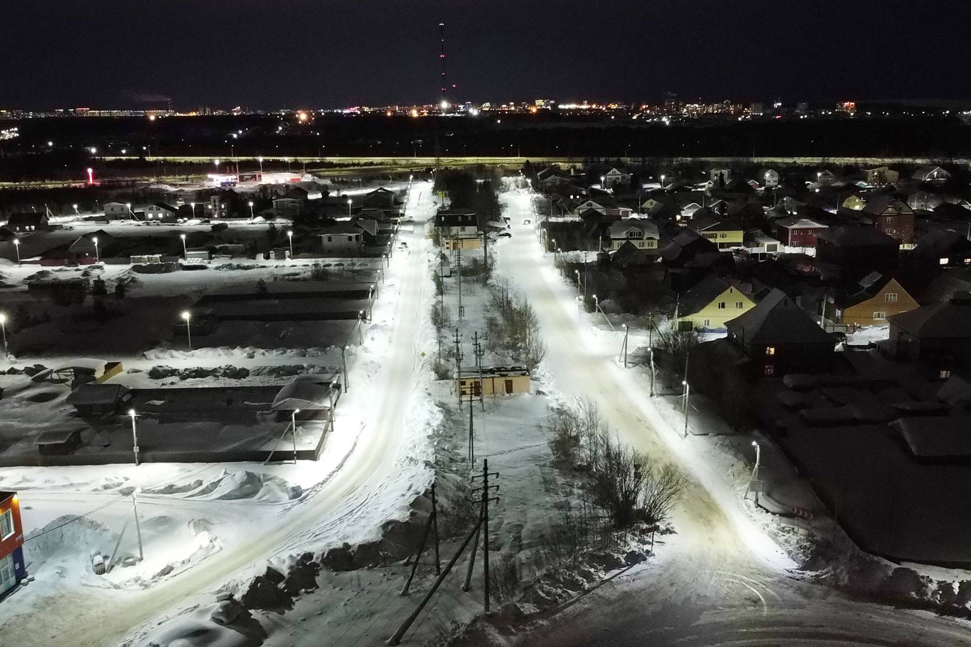 Предложенное осветительное решение: в рамках реконструкции освещения посёлка Солнечный была осуществлена поставка светодиодных светильников Магистраль v2.0 Мультилинза 80 ЭС 5000К 155×70° в количестве 80 штук и