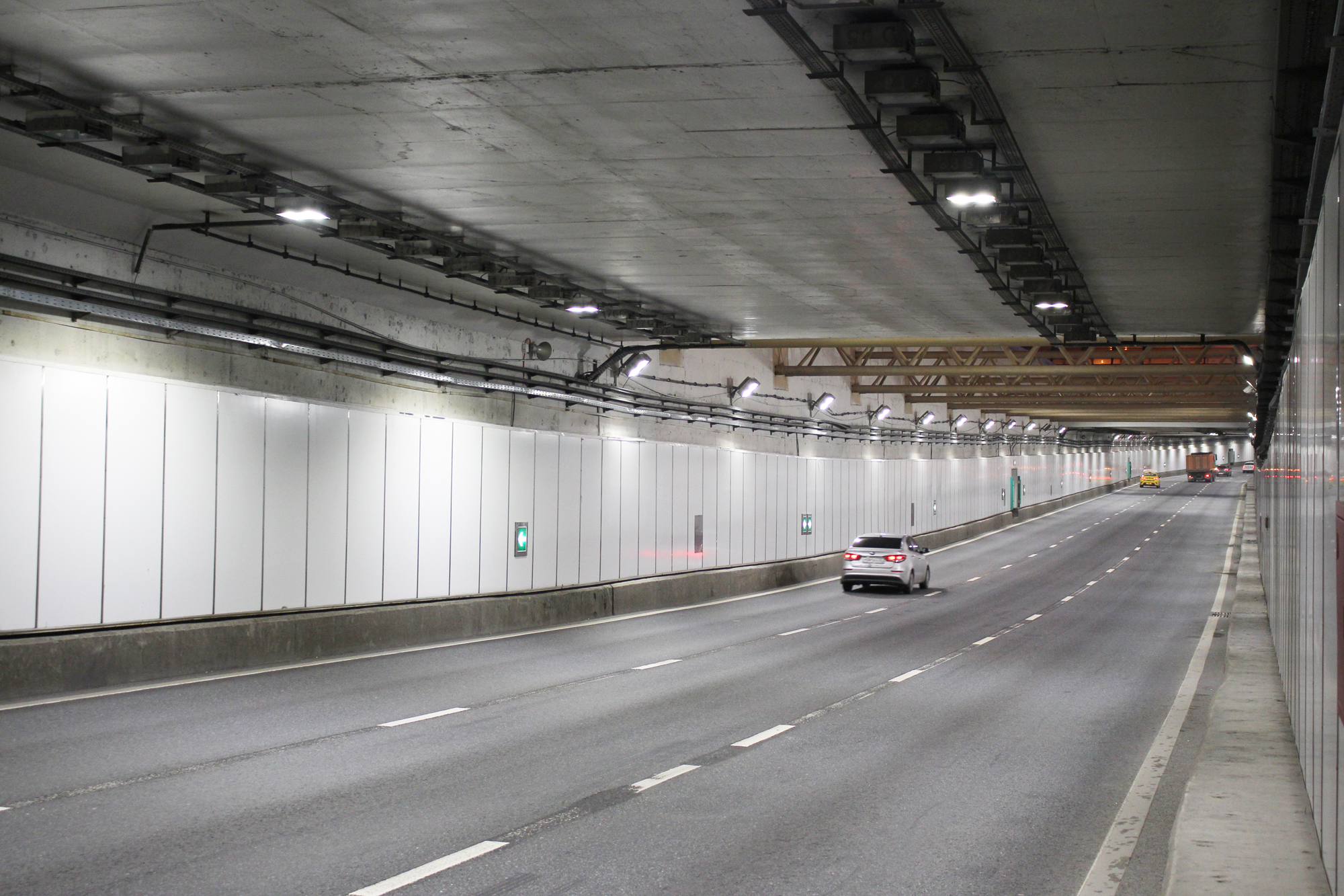 Предложенное осветительное решение: Специально под данный проект освещения сконструирован светодиодный светильник ПромЛед Прожектор Тоннель в корпусе из нержавеющей стали, мощностью 215 Вт и с двойным уголом половинной яркости 120°. Для освещения двух тоннелей установили 750 штук данных светильников.