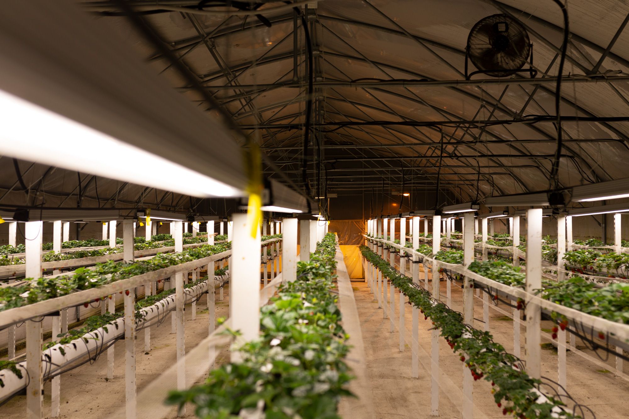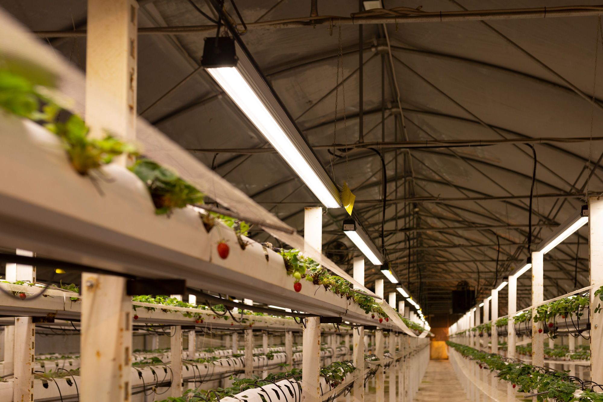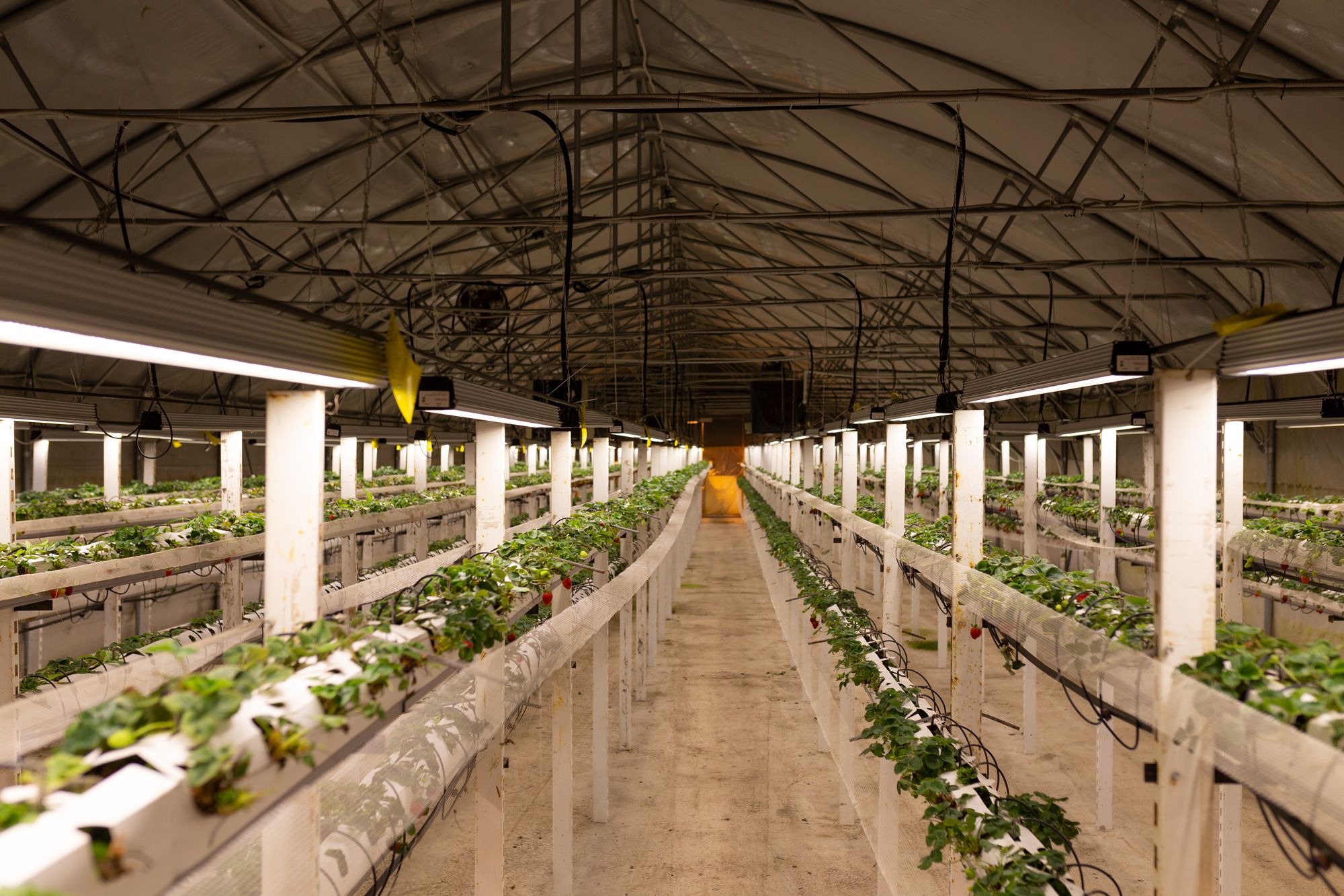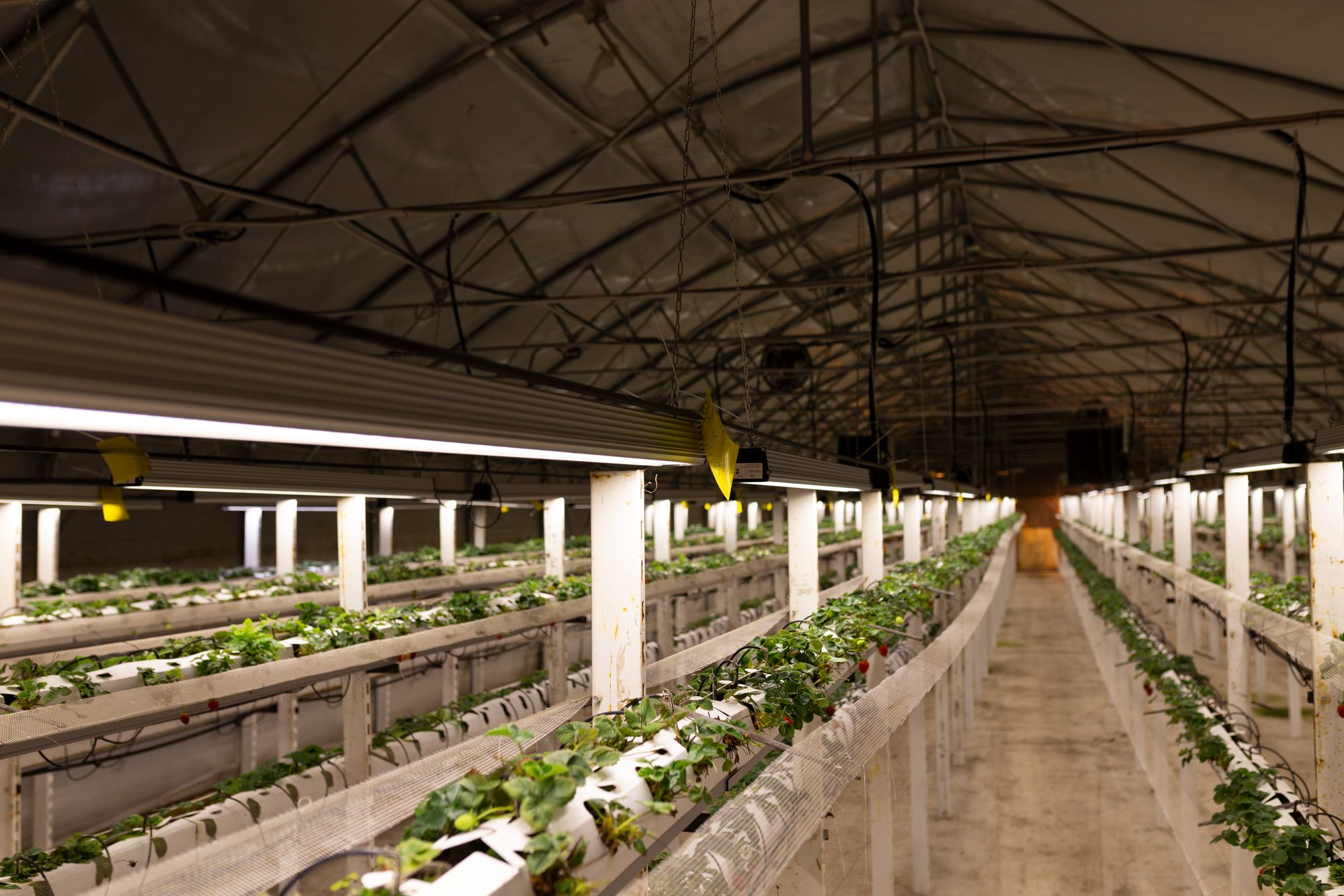 Поставленная задача: обеспечить освещенность 14000-16000 лк для роста и созревания ягодных культур (клубника и земляника).