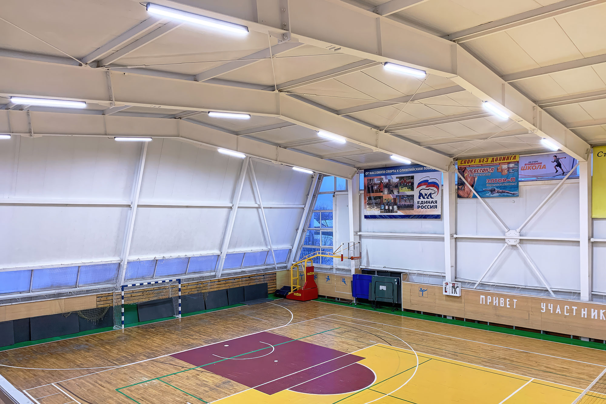 вместо устаревших светильников с ДРЛ-лампами были установлены линейные светодиодные светильники.