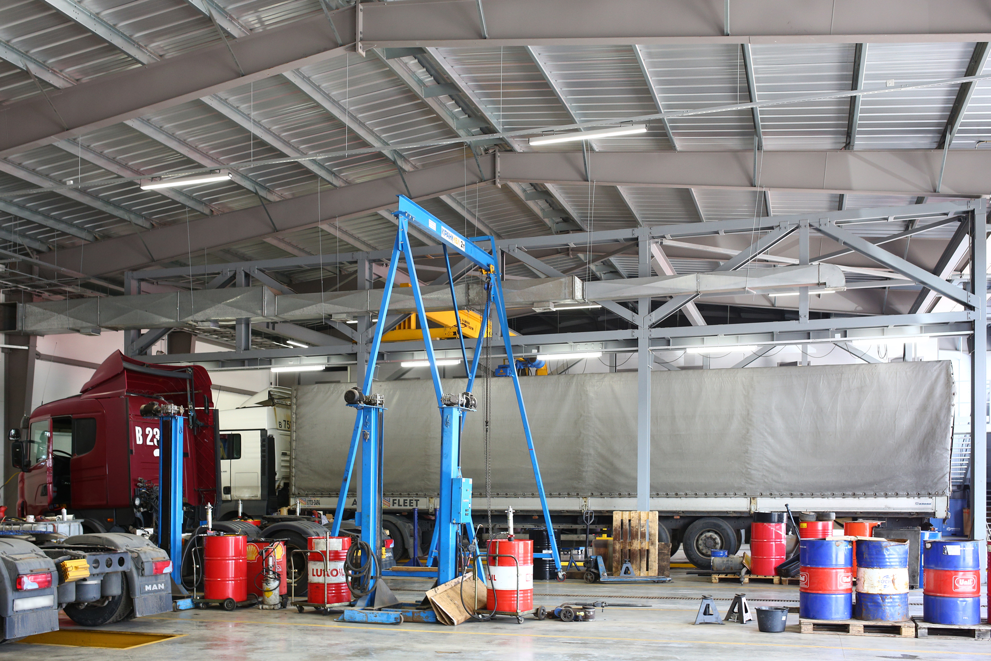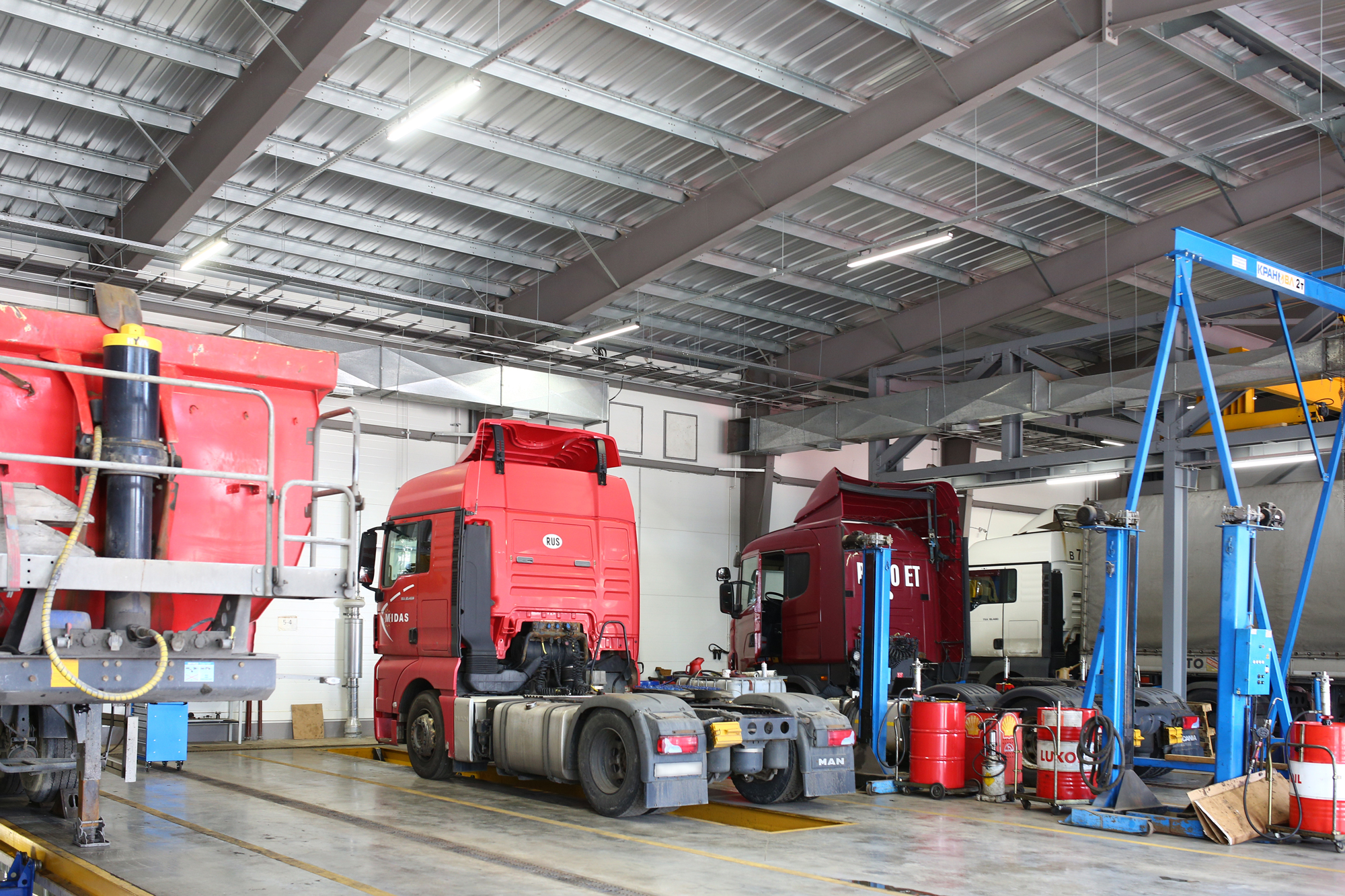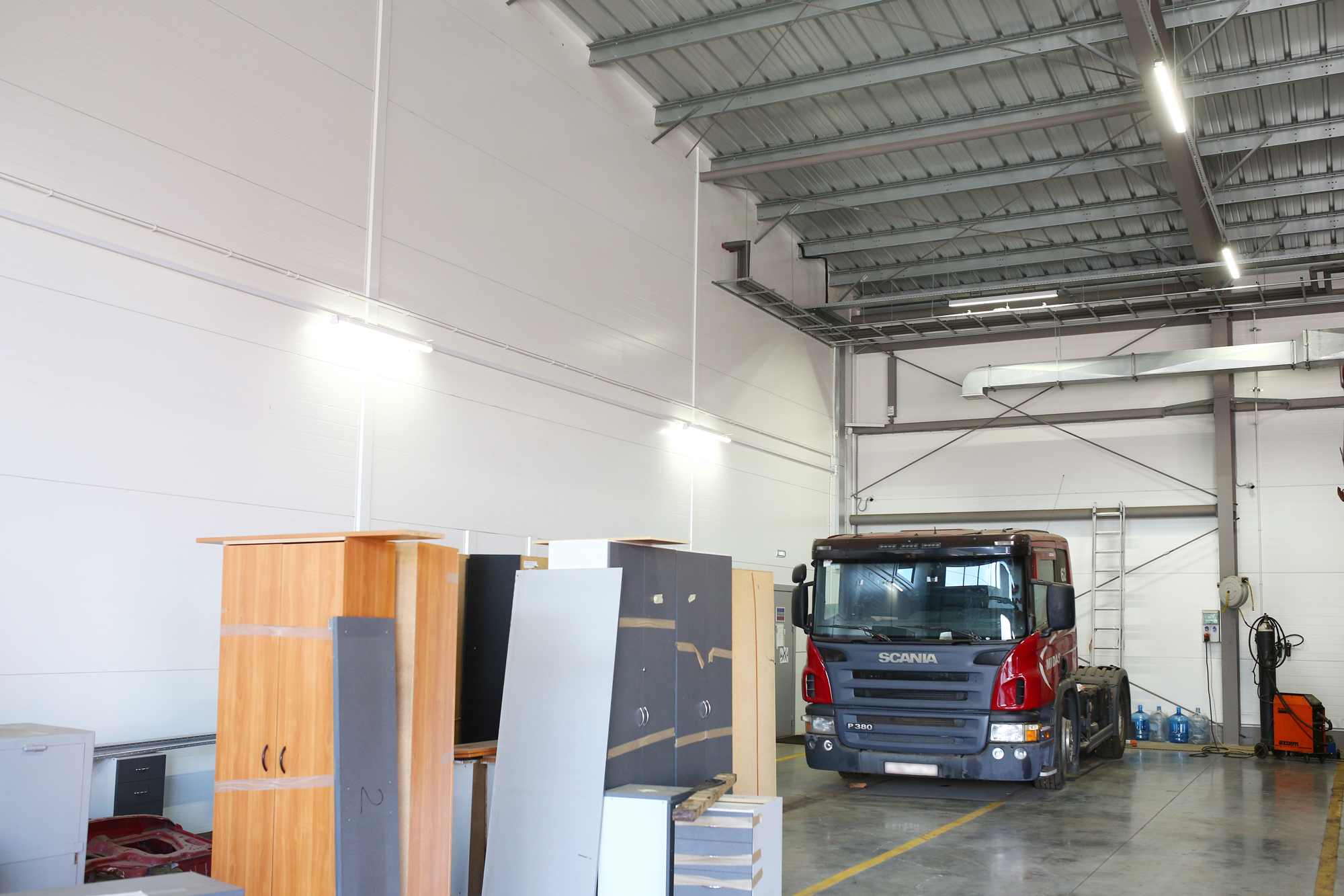Предложенное осветительное решение: На территории автопарка установили светодиодные светильники ПромЛед Т-Линия v2.0-150 для освещения помещений и Айсберг v2.0 40 Низковольтный для освещения смотровых ям. В складских помещениях установили Айсберг v2.0 40, в офисных помещениях установили светодиодные светильники ПромЛед Офис 40 Микропризма