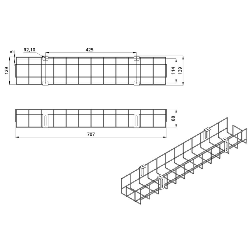 | Габаритные размеры, не более, [мм] | 707×139×88 |