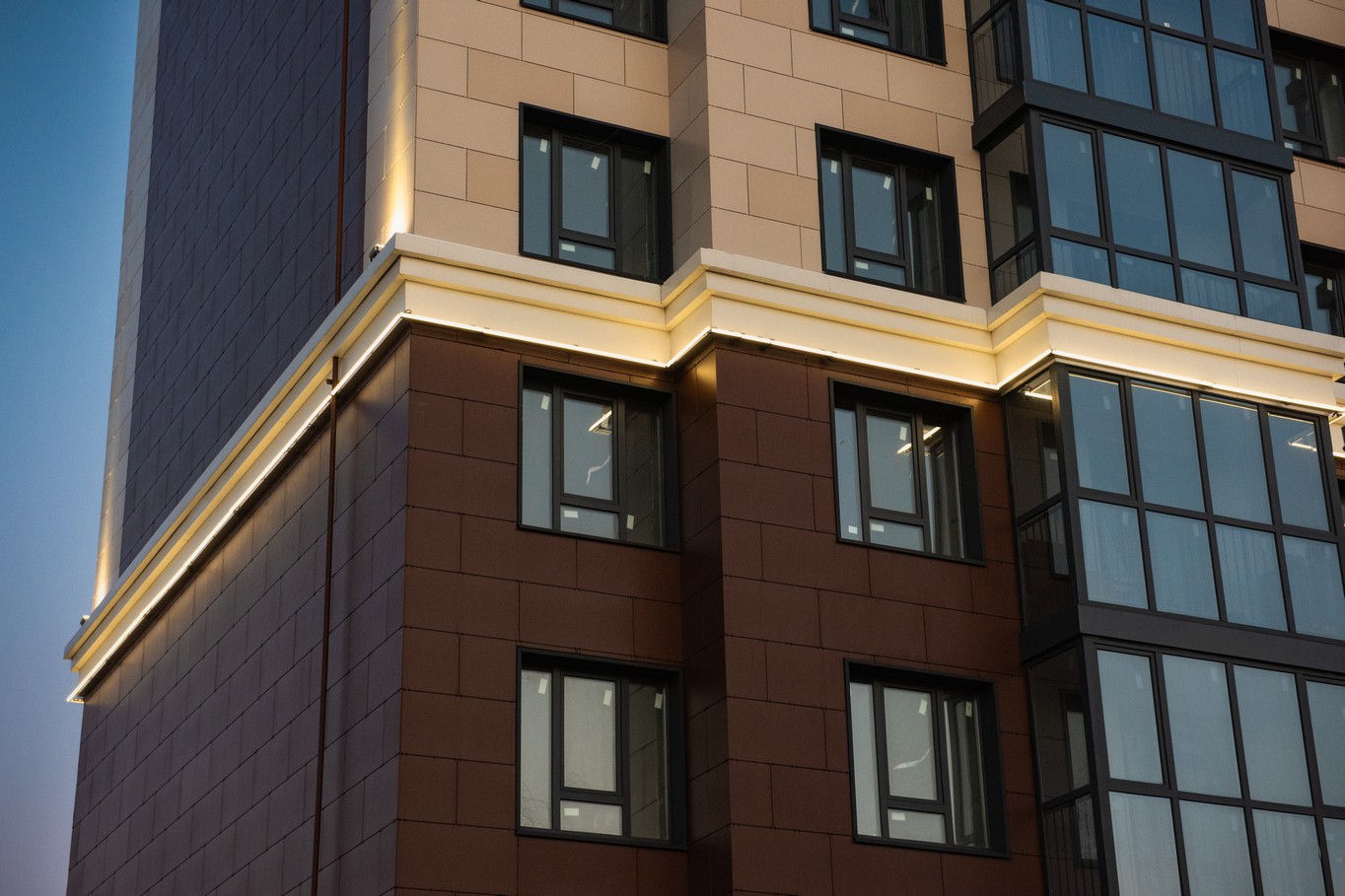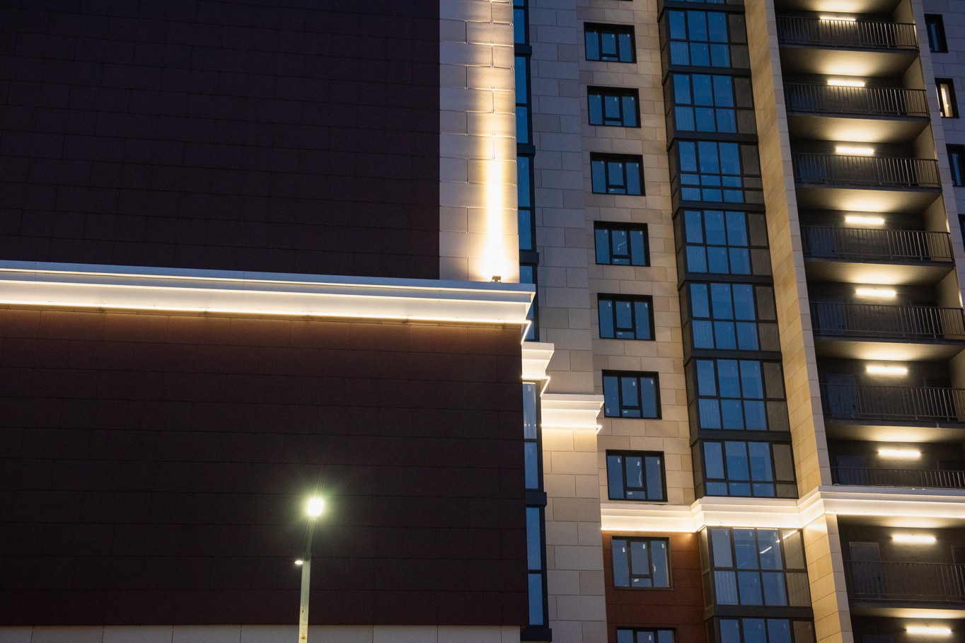 в рамках реализации проекта ГК «АПЕКС-ЭНЕРГО» — официальный партнер PromLED — разработала концепцию архитектурной подсветки, подбор и монтаж светильников.