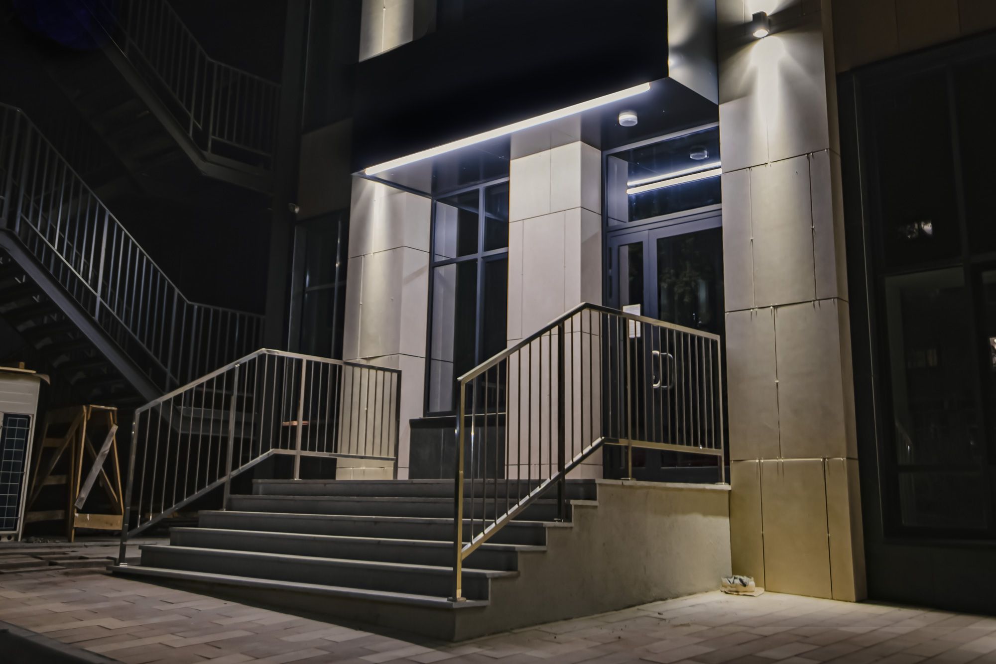 Поставленная задача: выполнить архитектурную подсветку элементов фасада - стилобата и перголы.